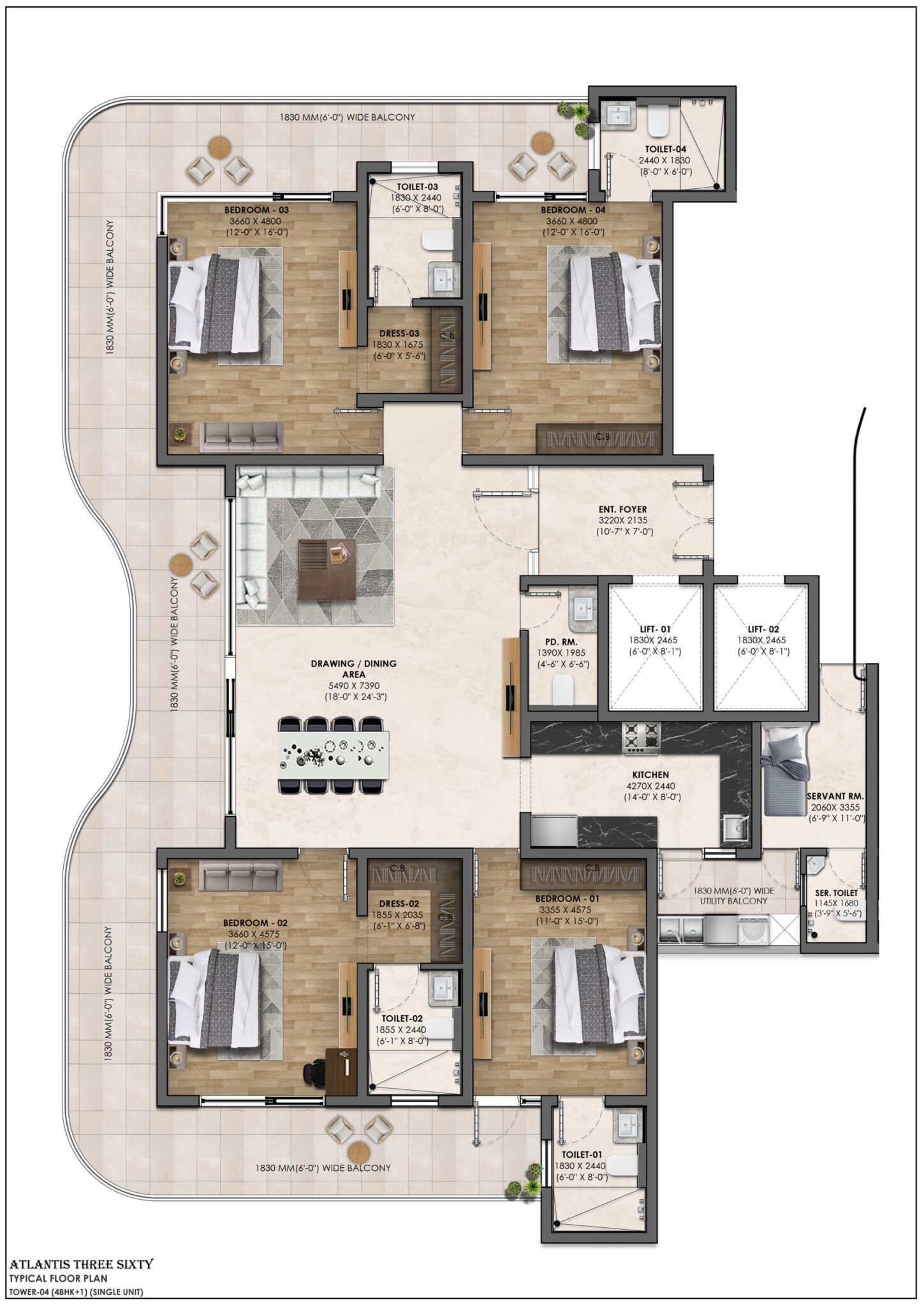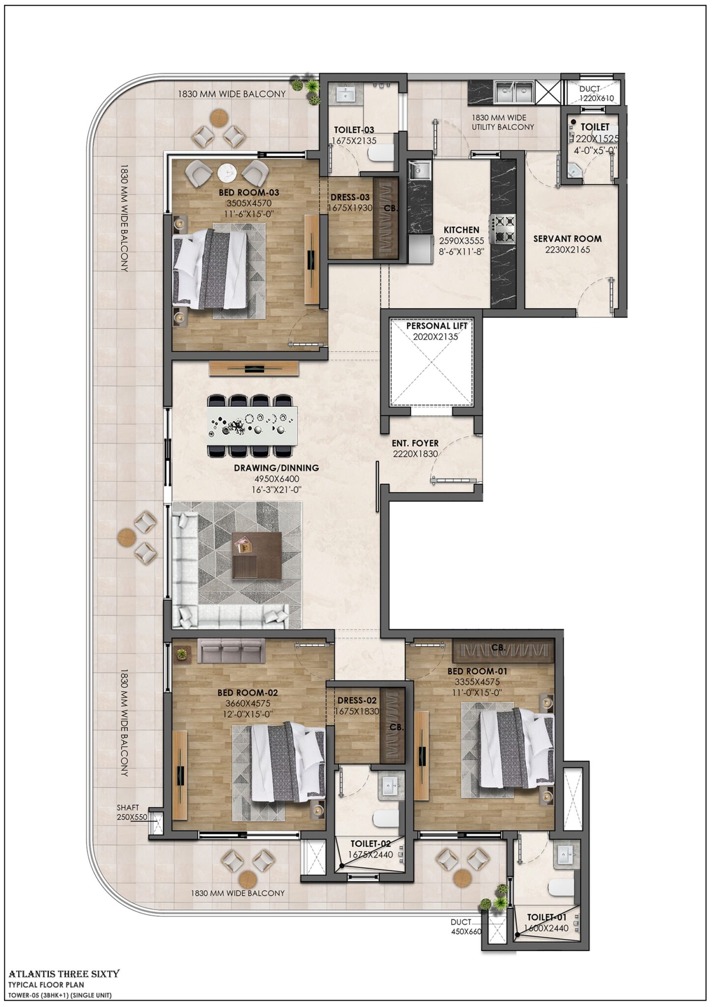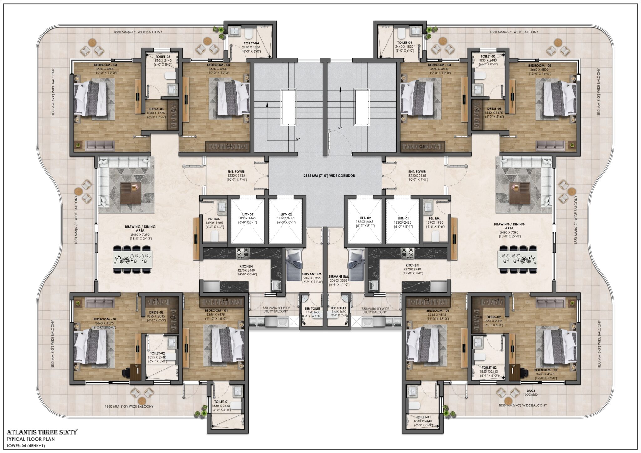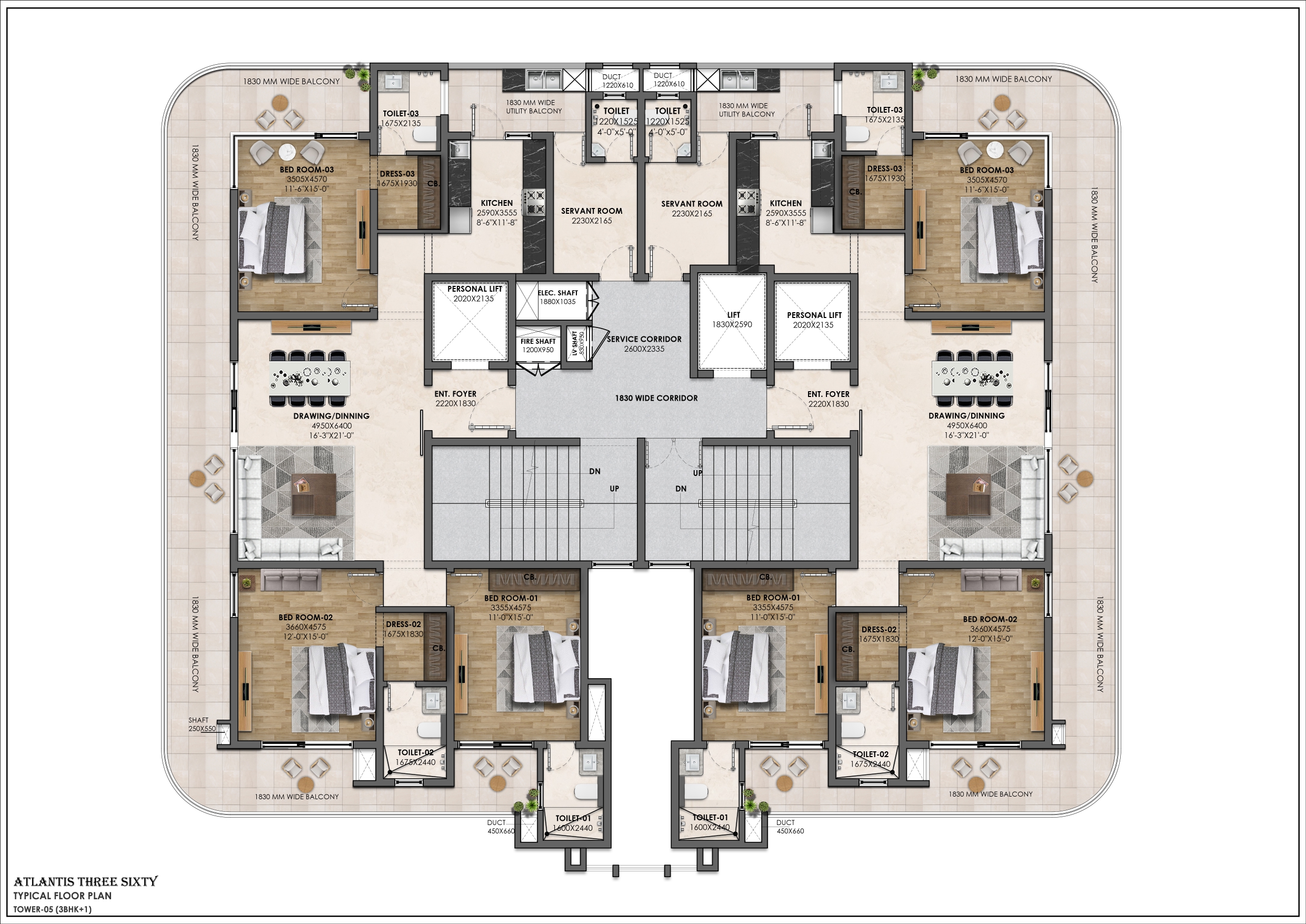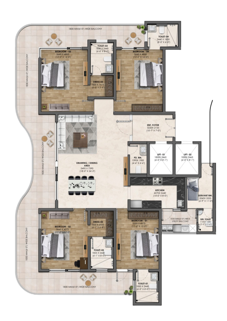 Atlantis 360 Flats redefine modern living with limited apartments, private lifts, and panoramic views. These Luxury Flats on Airport Road Zirakpur are designed for families who want exclusivity and seamless connectivity.